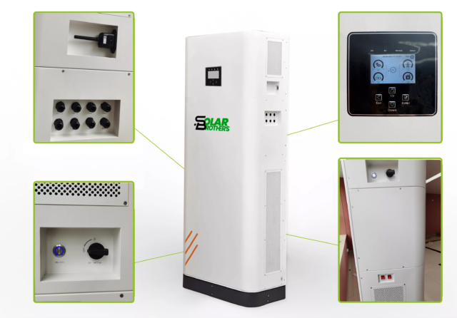 Třífázový invertor, takzvaná „lednice“, srdce celé soustavy. Slouží k přeměně sluneční energie na elektřinu pro vaši domácnost a na ukládání do integrovaných baterií. V základu je k systému připojeno 24 panelů o celkovém výkonu 9,84 kWp (současný legislativní limit pro domácí elektrárny je 10 kWp).
